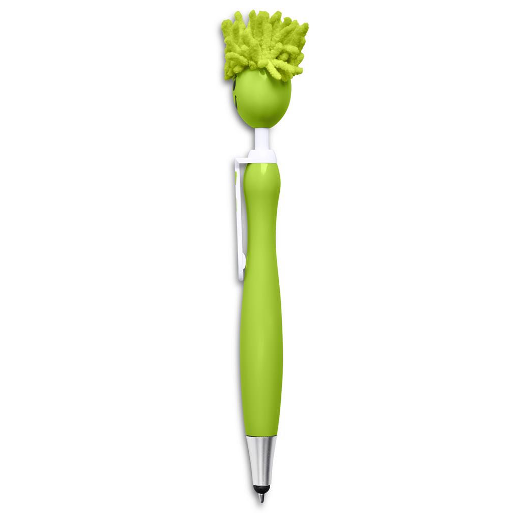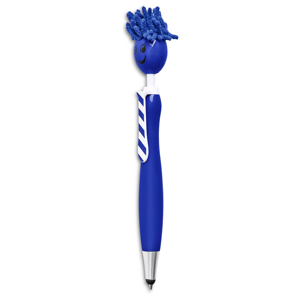 This fun, multifunctional pen features a smiling face pusher with soft microfibre “hair” that doubles as a handy screen cleaner. It includes a smooth-writing ballpoint tip and a rubber stylus for use on touchscreen devices. Whether tapping, swiping, or signing, the stylus keeps screens free from fingerprints while offering improved control and precision. A cheerful and practical promo item that keeps your brand top of mind.