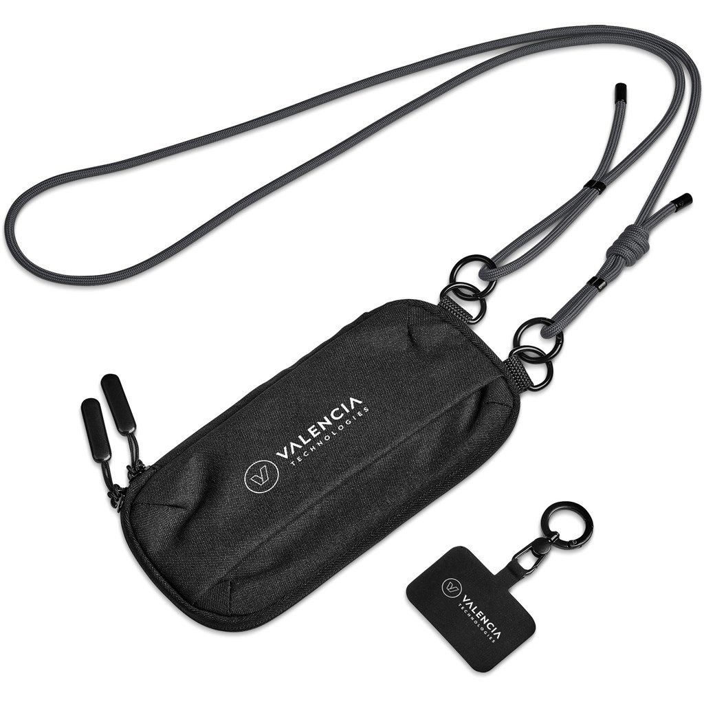 The material of this detachable phone bag is made from recycled plastic bottles. It’s useful for keeping your phone, cards, cash and keys safe and close. The strap can be easily adjusted to a length that’s comfortable for you. The strap can also be detached from the bag, to be used, together with the included phone patch, as a crossbody phone strap. The patch fits between the phone and a phone case, with a loop popping out of the charger port opening of the case. The loop can then be attached to the clip of the adjustable strap. By adjusting the length of the strap, you can choose to wear it as a crossbody strap, a shoulder strap or a neck strap.