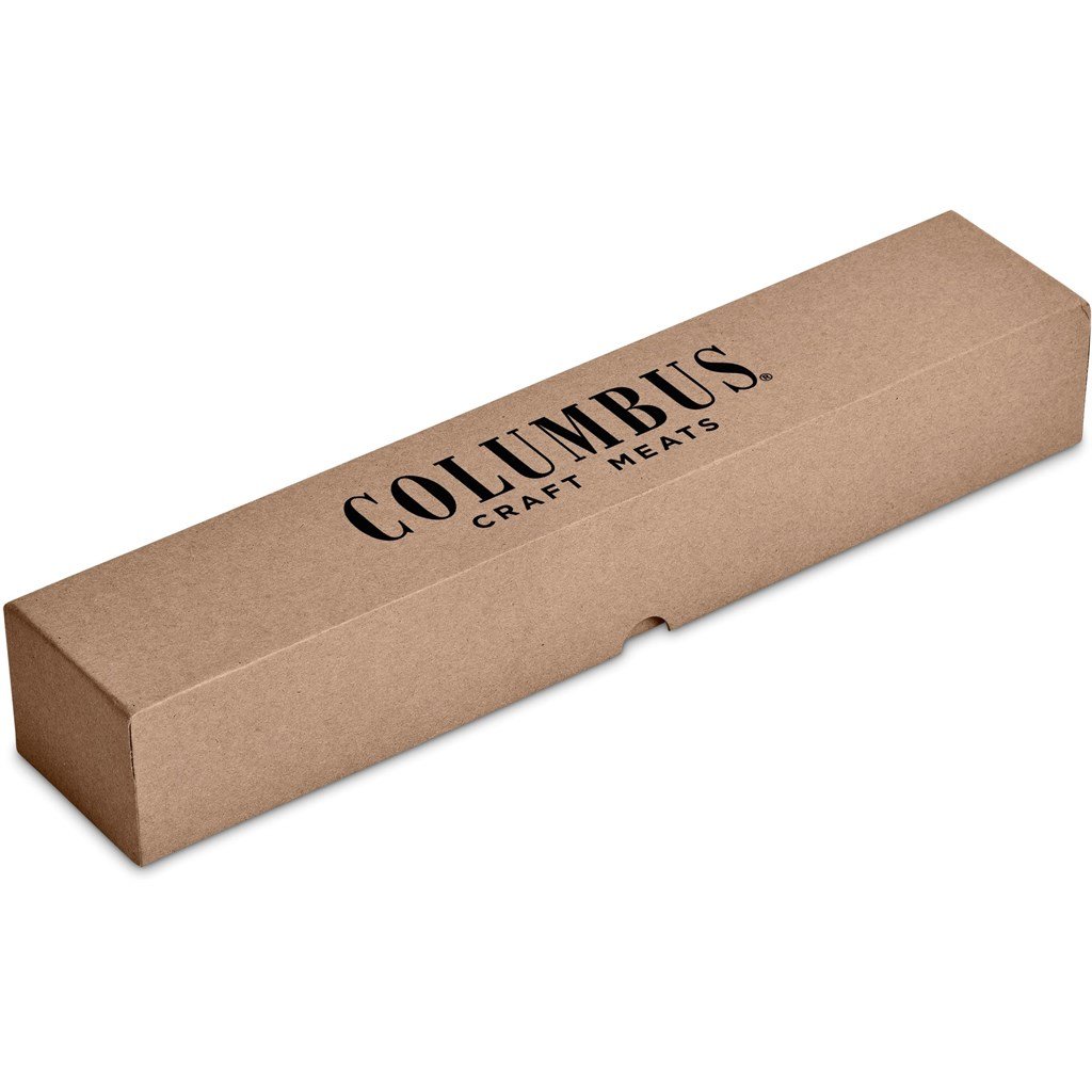 Featuring a pair of tongs, a spatula and a fork, this set will have you covered for everything from burger patties to steaks and chops. Each one has a bamboo handle, and the fork and spatula have a leather hang loop. Packaged neatly together in a 2-piece kraft gift box which can be branded with your logo or message.