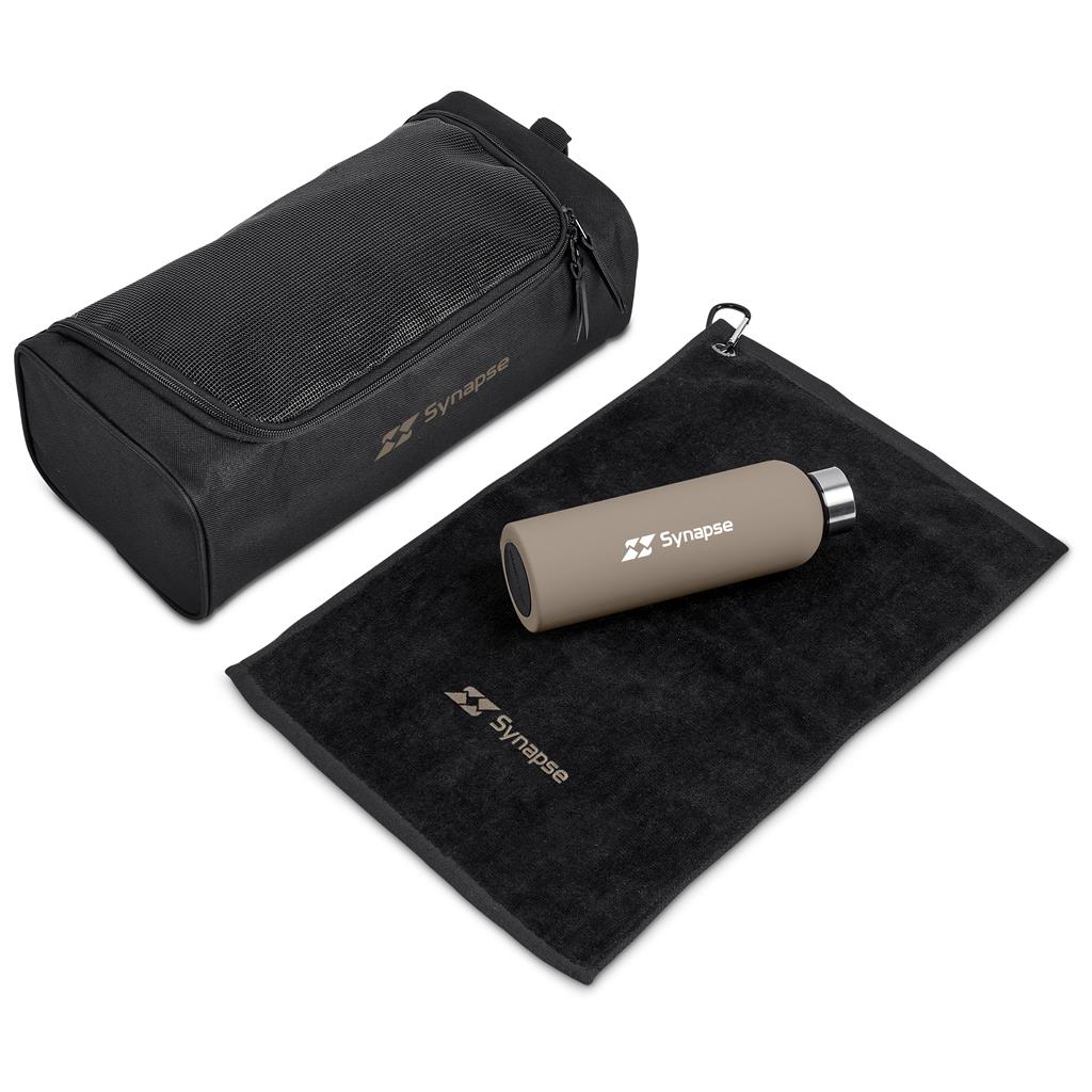 The set includes a soft, highly absorbent golf towel, ideal for cleaning clubs, balls, and hands throughout the round. The water bottle provides a convenient hydration solution during play. Together, this golf set offers a cohesive and practical solution for golfers of all levels and is well-suited as a premium gift, corporate giveaway, or retail bundle.