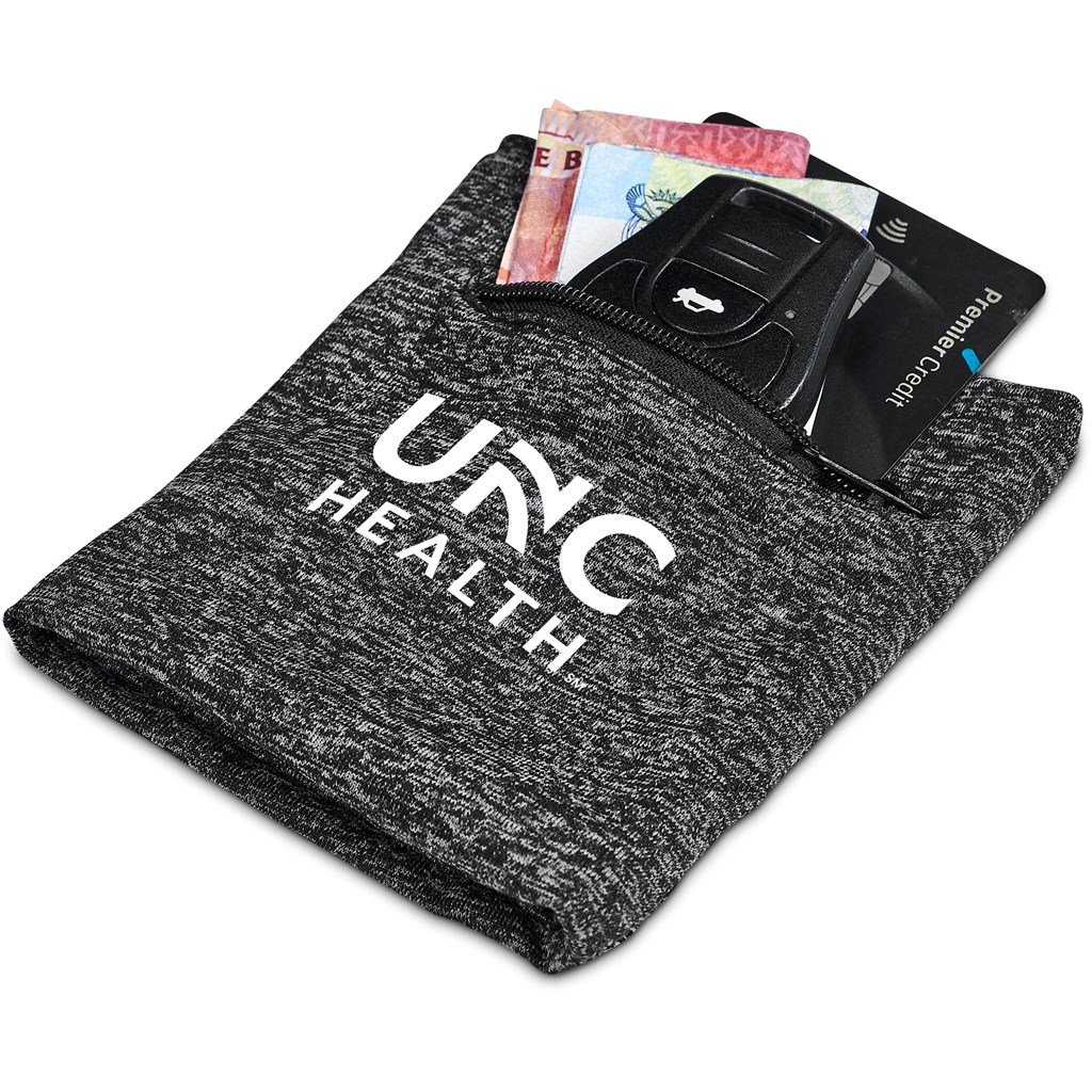 Soft, comfortable stretch fabric wrist band, with a zip pocket for storage of cards, cash and keys. Especially useful for running, cycling, training and other sporting activities.
