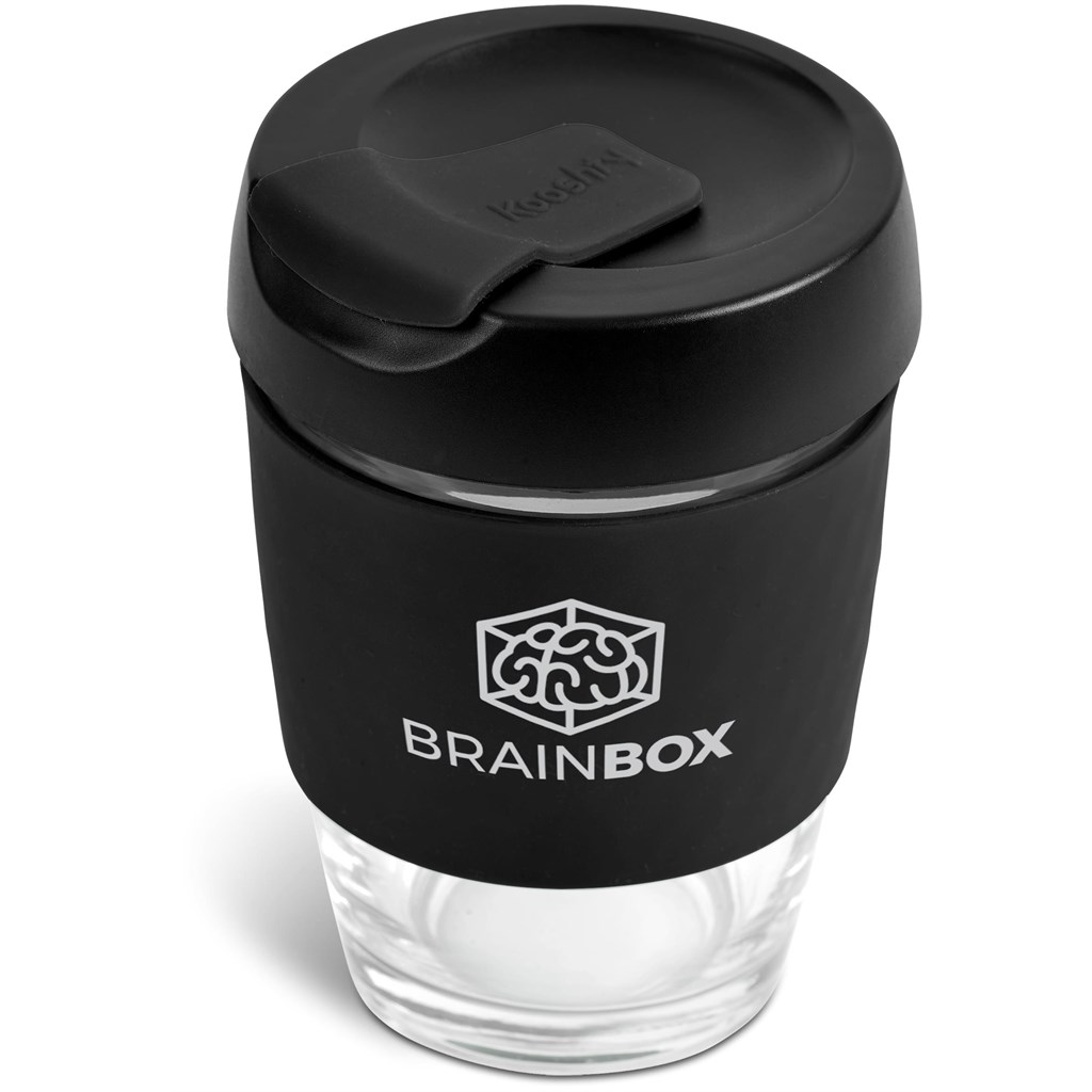 Made from strong, borosilicate glass, this is a reusable alternative to single-use coffee cups. The silicone band will insulate your hand from the hot beverage inside the cup. The matching, swivel-style silicone cap makes opening, sipping, and closing a breeze.