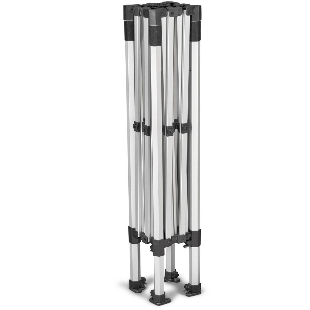 This gazebo is perfect for brand activations, product launches, sporting events, and mobile retail shops, to mention a few. The Petite Gazebo features extra collapsible legs that slide in, making it compact and portable, allowing for easy transportation.
